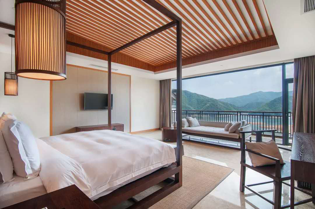 置于碧绿幽静的竹林之中,空间广阔,拥有超大睡床,可以将庄园内的碧水青山尽收眼底。房内精致奢华的细节处理和自然野趣的装饰风格,极具亲和力,充满欢乐温馨的气息。在这里,听虫鸣鸟叫,看繁星点点,与动物为邻相伴。