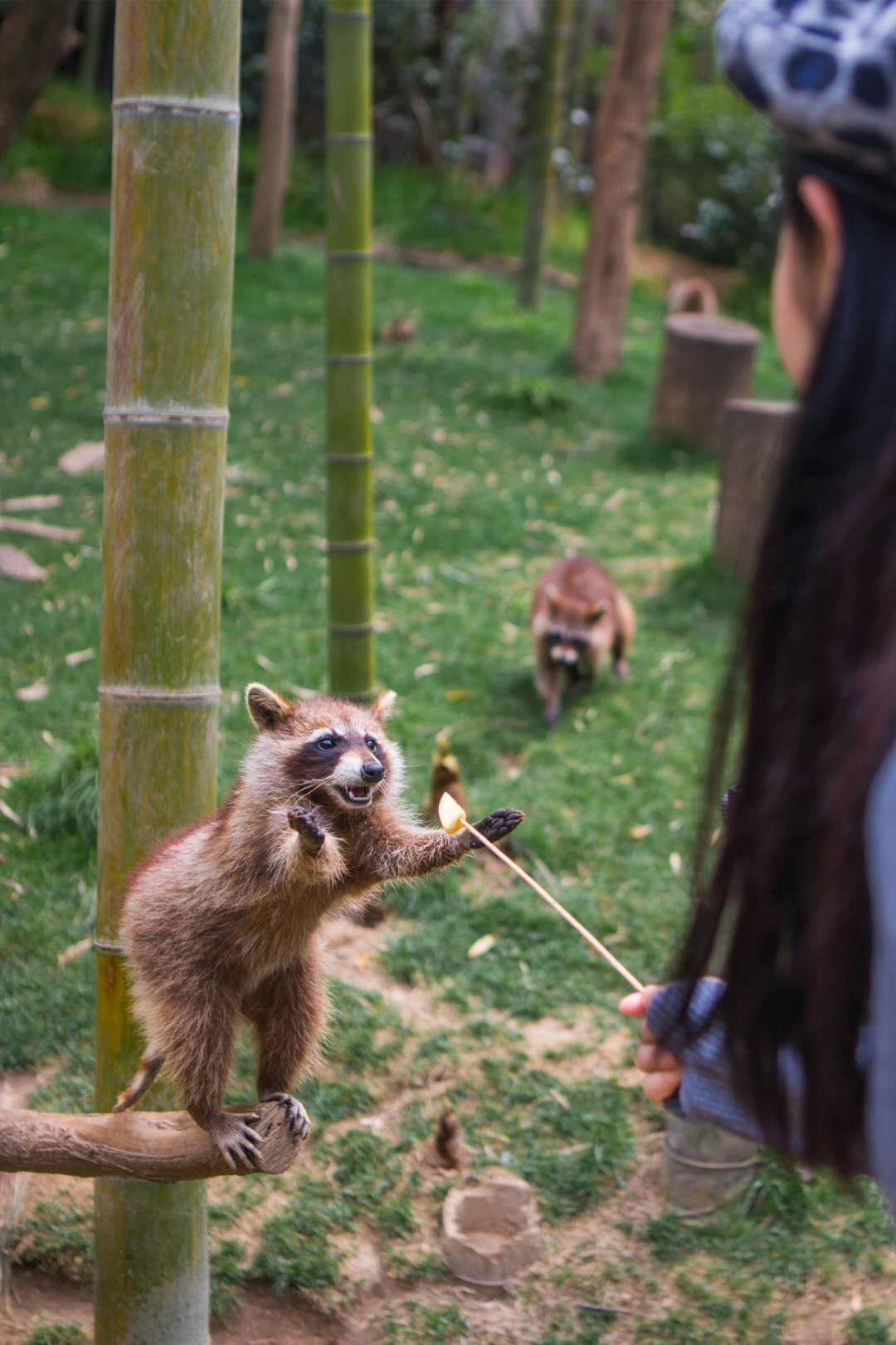 若是不想出门,可以在庄园内随处逛逛,化身“动物世界”的一员。除了“绅士”般的长颈鹿,这里还有可爱逗趣的小浣熊、优雅的丹顶鹤和数十种萌宠,它们藏身于庄园的每一角落,在转角,可能就会遇上。