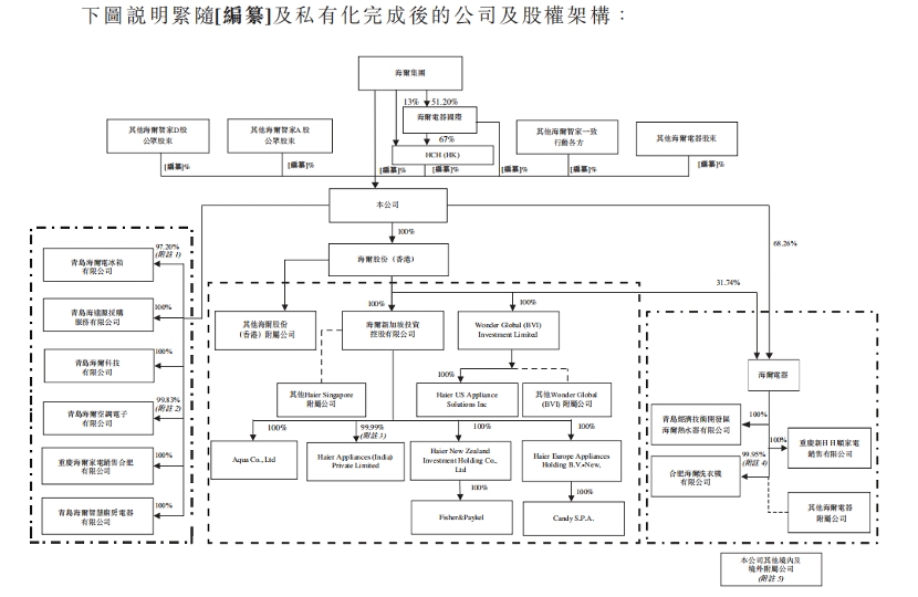 招股书披露,于最后可行日期,海尔集团直接及透过其附属公司及投票权安排间接持有本公司约40.03%的已发行股本,其中约16.30%为直接持有,约23.73%乃分别透过附属公司及投票权安排持有。