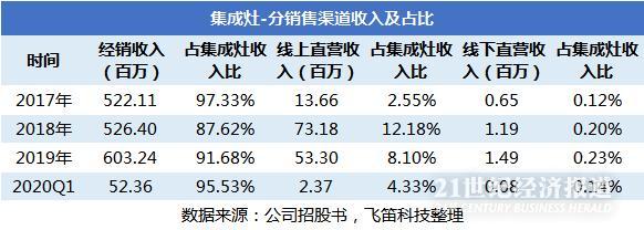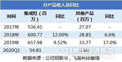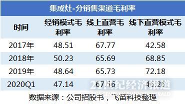 线上直营渠道为公司近年来的拓展重点。帅丰电器在招股书中提示,2018年开始,公司更注重线上直营渠道,加大了线上资源的投入,因此可以看到,在2019年,公司的线上直营收入占比达到了12.18%,但到了2019年和2020年一季度,线上收入占比下降明显。