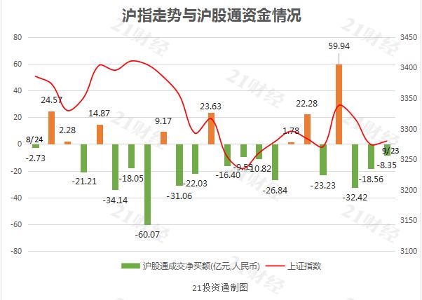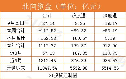 北向资金继续出逃,全天合计净流出27.54亿元。其中,沪股通净卖出8.35亿元,深股通净卖出19.19亿元。截至目前,北向资金已经连续三日净流出,合计流出净额达到112.5亿元。中秋国庆长假前夕,外资对市场相对谨慎。