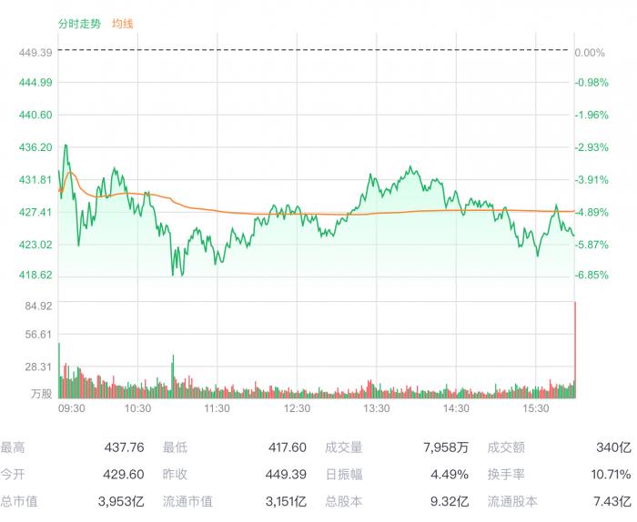 据悉,由于在技术等方面的成果发布不及市场预期,特斯拉盘后股价转跌,一度下跌7.6%,市值缩水300亿美金,约合2033亿人民币。截至22日美股收盘,特斯拉跌幅5.60%,报424.23美元。