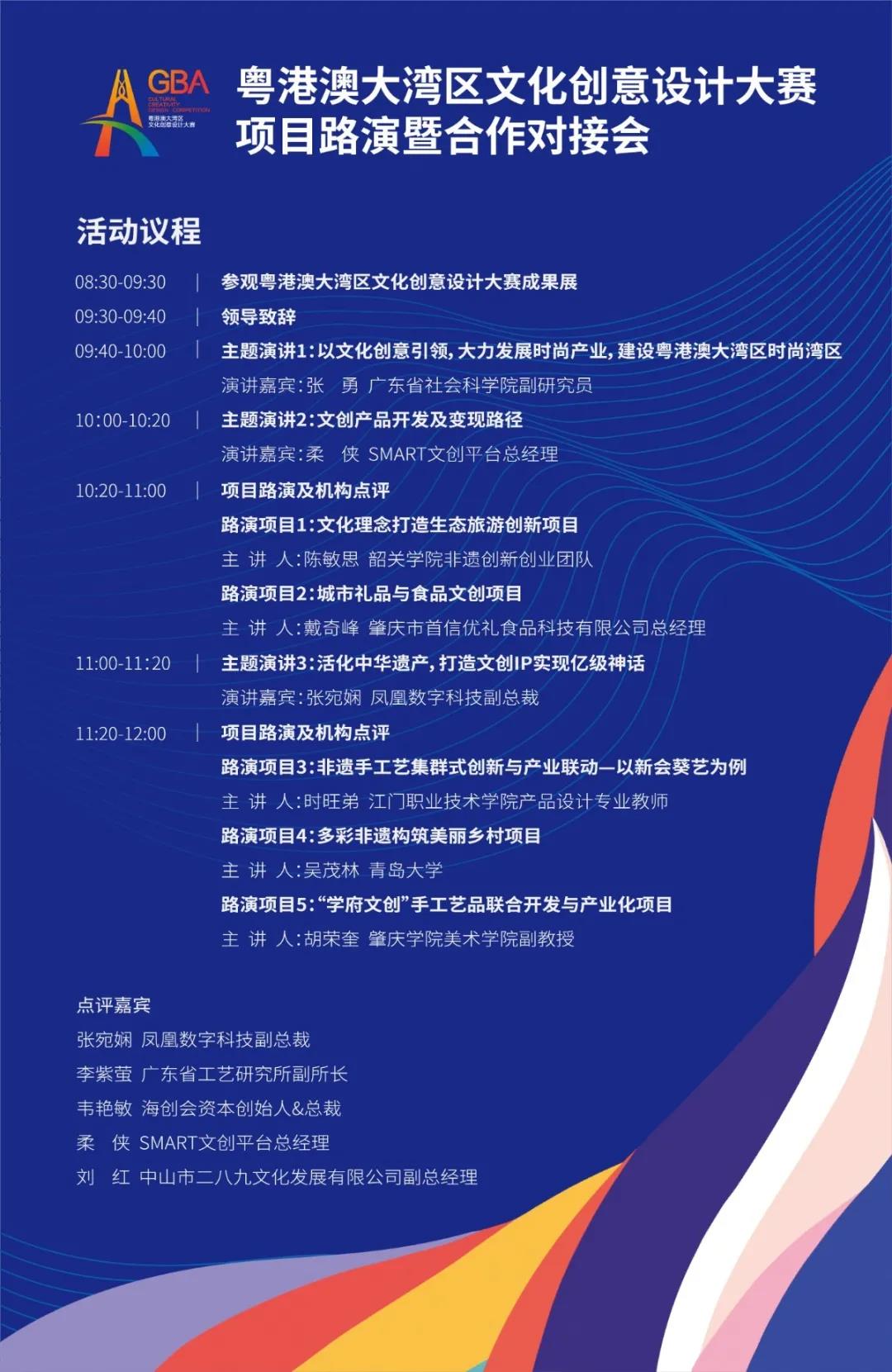 粤港澳大湾区文化创意设计大赛项目路演暨合作对接会将于9月24日在珠海市举办。