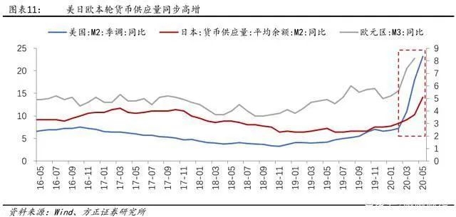 下图是全球主要央行货币放水的增长情况,据粗略统计,截至9月初全球放水已经超过18万亿美元,折合人民币123.5万亿,比中国2019年全年的GDP还要多出24万亿。