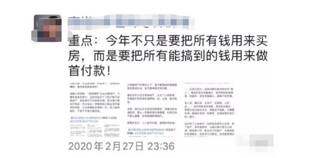 下面是某大V的购房群和朋友圈日常留言: