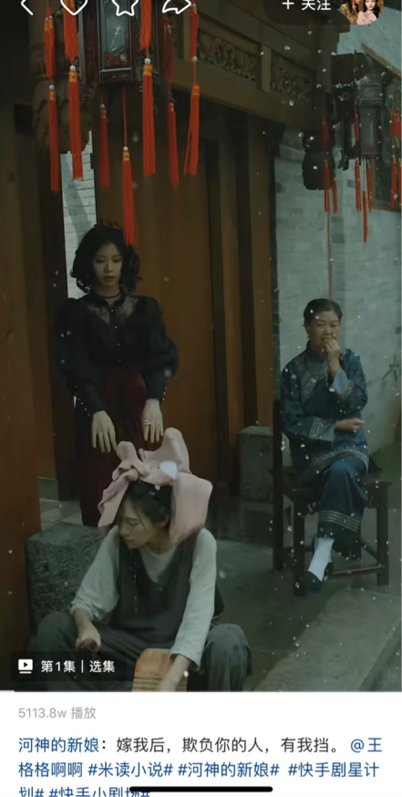 8月底时,米读又推出了一部新民国玄幻短剧《河神的新娘》,单从数据上看成绩也是相当可观,首集上线36小时,播放量就突破了4200万,点赞180万,单集吸粉超过百万。