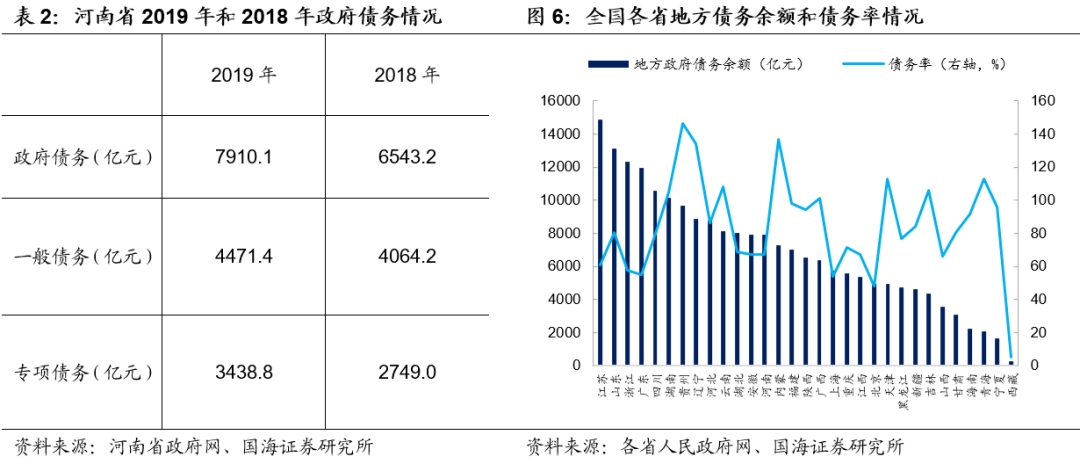 整体来看,河南省近几年经济增速较快,政府财政实力位居全国前列,政府债务规模和债务率处于全国中游水平,相对可控。目前有存续债券的城投平台资质整体较好,但未来3年内面临一定的债券兑付压力。
