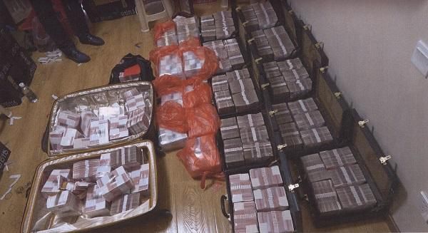 在地下室码放整齐的受贿款