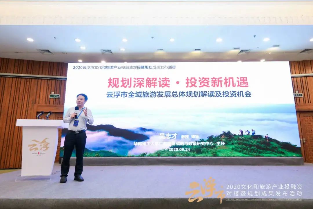 华南理工大学广东旅游战略与政策研究中心主任、云浮市文化旅游发展顾问吴志才教授、博导作《云浮市全域旅游发展总体规划(2020-2030年)》成果发布及投资机会介绍.