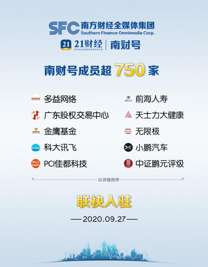 在9月27日举行的“2020中国智造业年会”现场,又有一批知名企业及金融机构集体入驻南方财经全媒体集团“南财号”平台。截至目前,南财号平台入驻成员已超过750家。