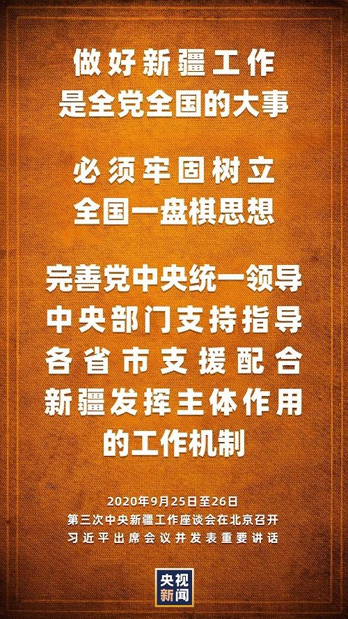 第三次中央新疆工作座谈会9月25日至26日在北京召开。中共中央总书记、国家主席、中央军委主席习近平出席会议并发表重要讲话。