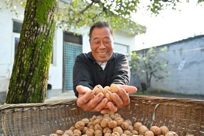 由村集体提供免费种苗及每亩地300块的补贴,2012年种核桃,拨云岭村成立了栾川县同富种植专业合作社,打造“拨云岭高山核桃”品牌,实现统一的种植、管理、销售。后又在核桃树下间作药用牡丹,表皮入药,籽可以榨油,可获两重收益。洛阳车务段驻拨云岭村扶贫干部王永建还向记者展示了和北京实验室合作的利用超临界榨油技术制作的新核桃油产品,“随着技术的突破,我们的产业会发展得越来越好,得让老百姓的腰包真正鼓起来。”