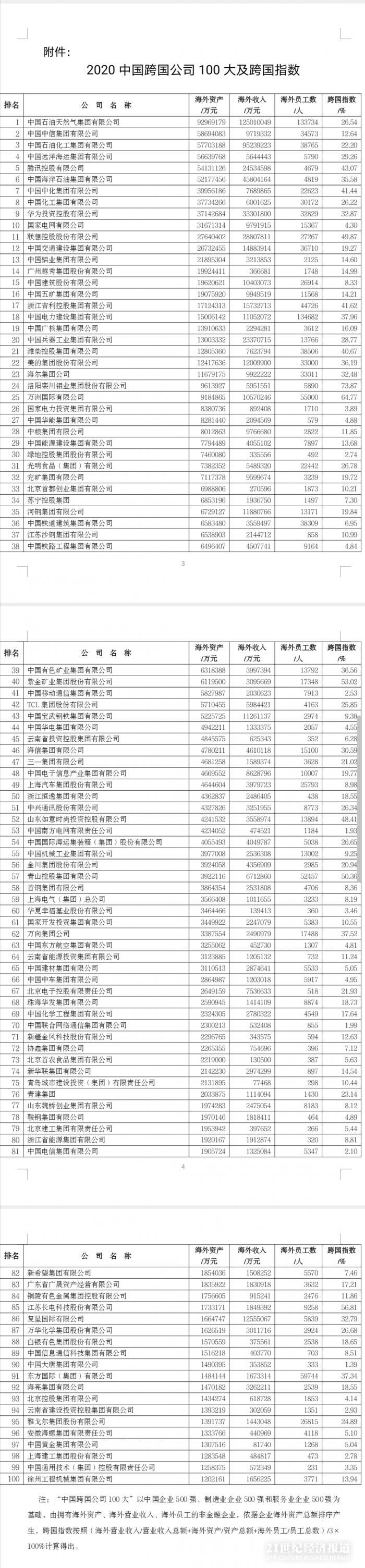 附:2020中国100大跨国公司榜单