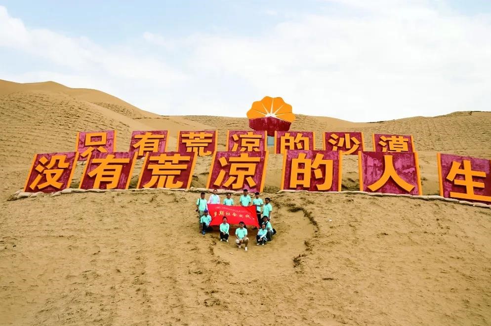 △陈腾辉和同学们在塔中镇参与社会实践时留影