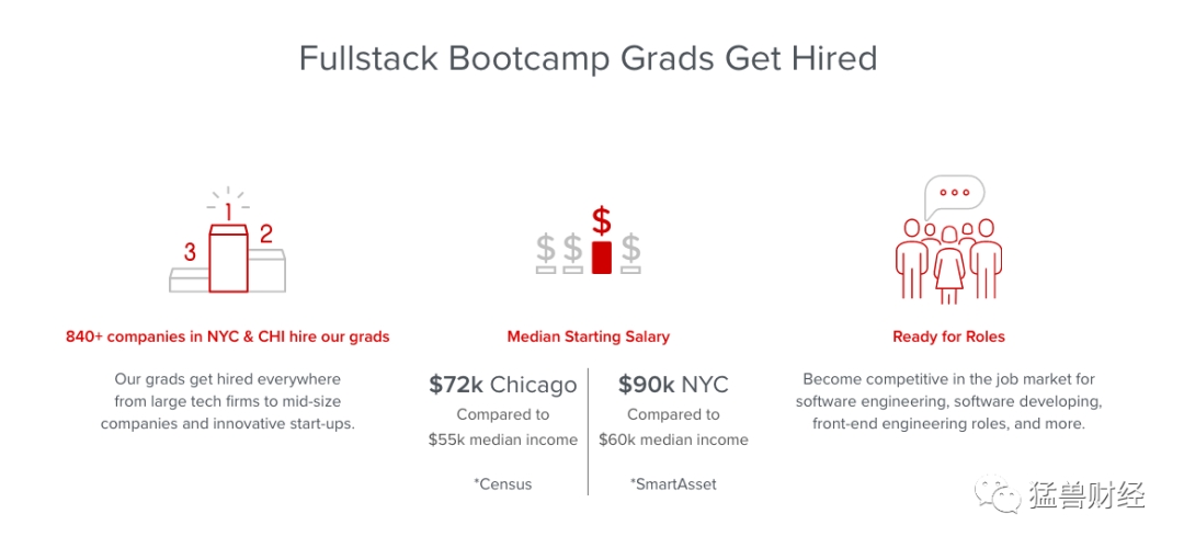 我们认为,由于与传统大学不同,FullStack等另类教育方式允许学生在找到全职工作后支付学费,因此编程训练营等另类教育方式的入学率正在上升。这种延迟学费的模式让客户避免了沉重的学生债务,并为客户提供了机会,有可能在半年内得到一份工资不错的工作。