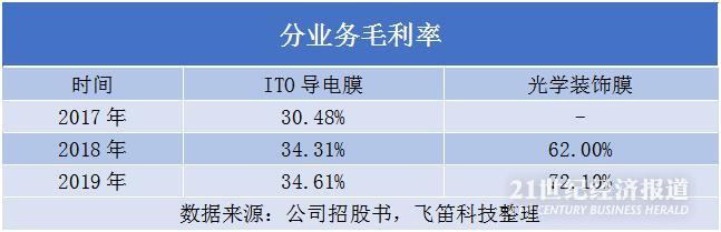 主要产品ITO 导电膜毛利率的提升,也带动了公司综合毛利率的提升。报告期内,公司的额综合毛利率分别为30.44%、35.10%和35.62%,呈逐年上升的趋势。