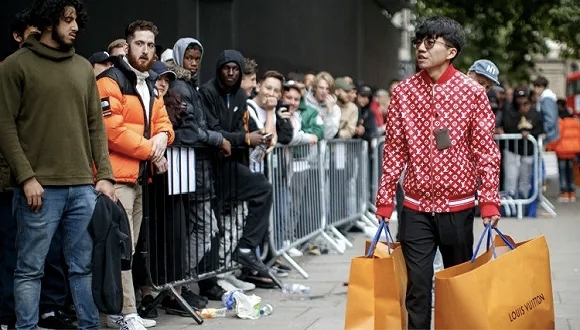 在北京快闪店,由于限买措施引发黄牛现场骚乱,并且即便限购,所有商品还是在2天内售罄而关店;日本快闪店外,1.5公里的路上是乌央乌央的7500人大长龙,超过100名警员现场维持秩序;在洛杉矶,快闪店启动的前一天夜里,门外已经超过5000人排队。