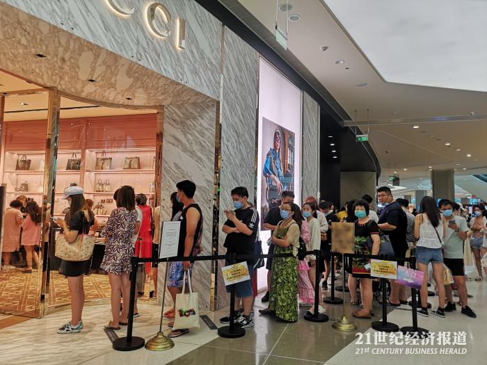 图:三亚海棠湾免税购物中心奢侈品店门口排起了长龙(高江虹/摄)