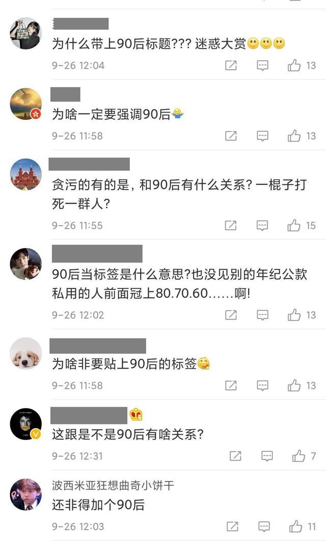 网友们在关注新闻的同时,不禁吐槽为什么非要带上“90后”,贪腐事件并非只发生在90后身上,为什么单单提出一个“90后”,90后就这么不受待见吗?