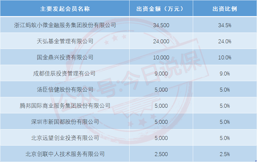 信美相互初始运营资金共计10亿元,其中蚂蚁金服和天弘基金分别出资3.45亿元和2.4亿元,占比达到34.5%和24%。