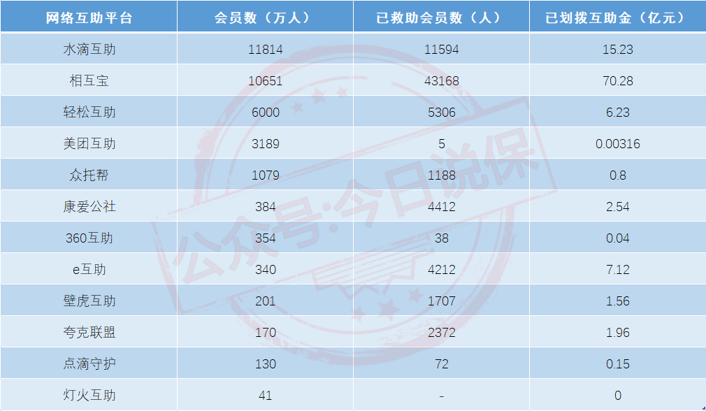 和同级别的水滴互助相比,在加入会员数接近的情况下,"相互宝"已救助会员人数达到了43168人,是水滴互助11594人的3.72倍;已划拨互助金70.28亿元,是水滴互助15.23亿元的4.61倍。