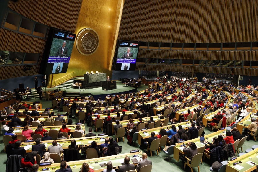 2020年3月6日,联合国妇女节纪念活动呼吁“平等一代”(新华社记者李木子 摄)