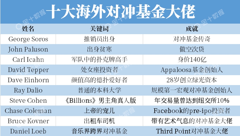 除了上述几位,金十还整理了10位顶尖的海外对冲基金大佬的出身:
