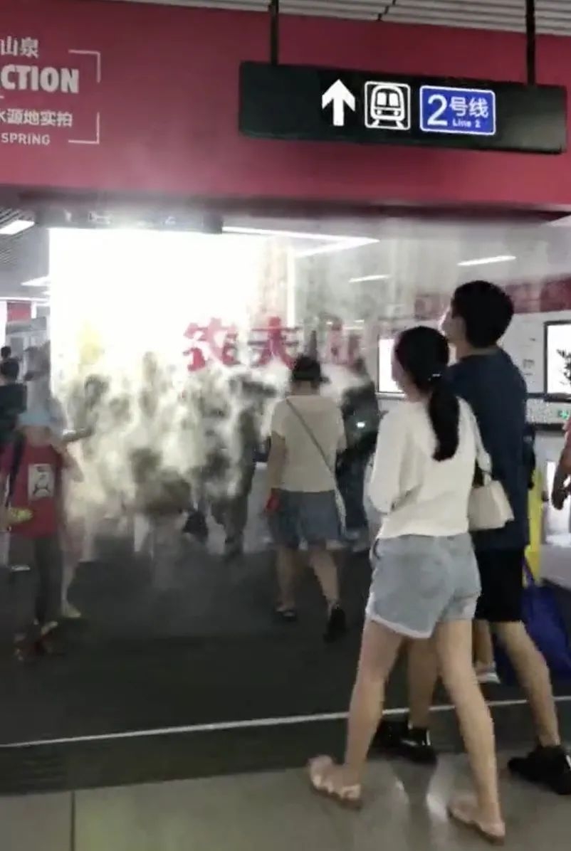 农夫山泉在合肥地铁中的雾幕“软”广,图片来自抖音