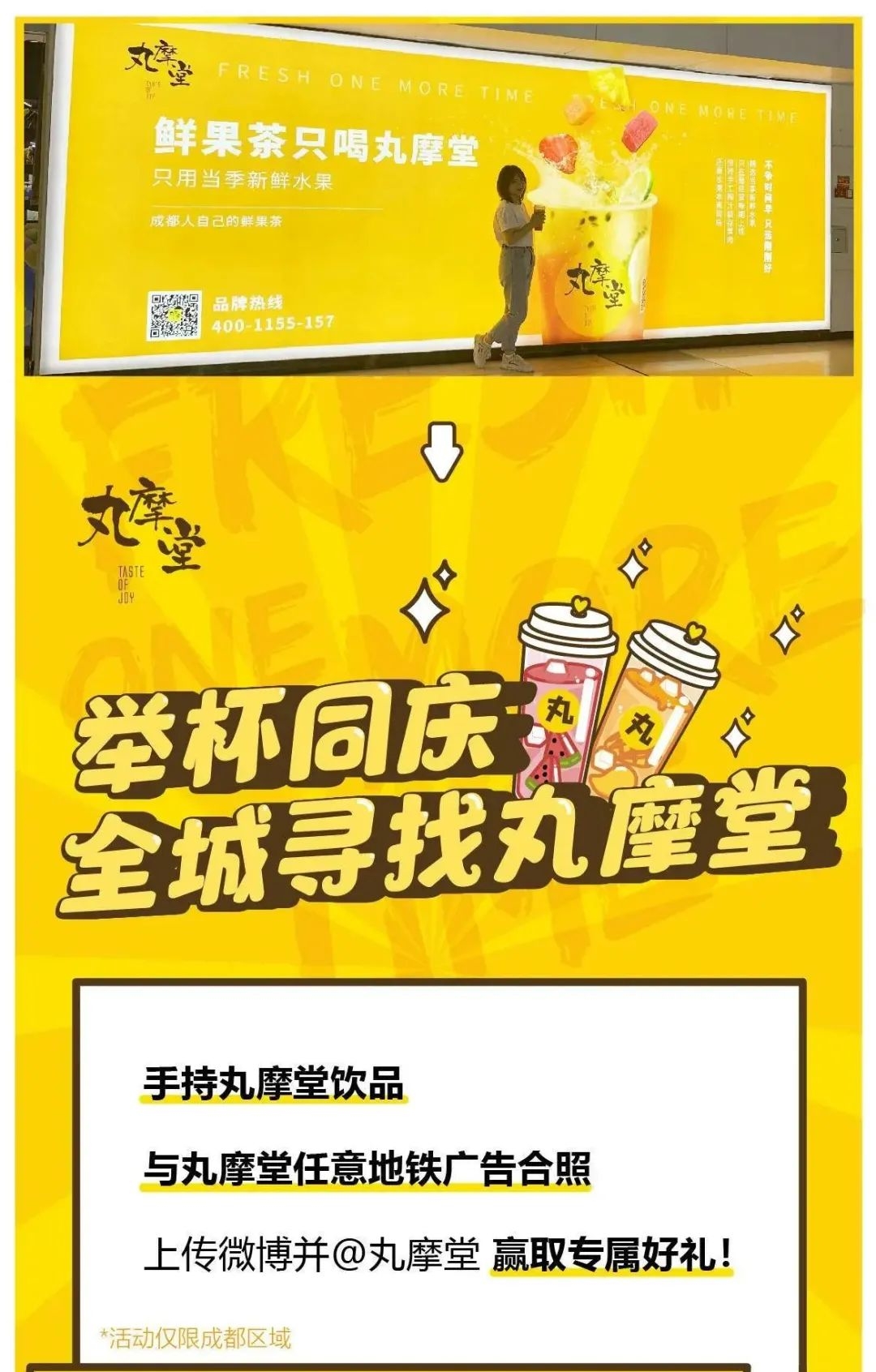 丸摩堂最近就在成都地铁投放了灯箱广告,与单纯投放不同的是,丸摩堂不但让你看到广告,还让你参与传播,形成营销裂变。
