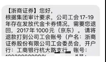 浙商证券相关人士表示,此前有网上流传浙商证券要求员工将多年前发放有关福利退回的消息,此次所涉及的退费是指2017年-2019年公司给员工发放的图书经费。