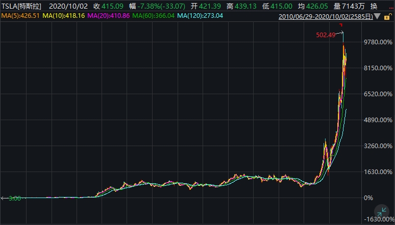 有时候,选择比努力重要,投资更是如此。这是特斯拉上市后的股价走势,自2010年上市至今的累计涨幅为8587.53%。