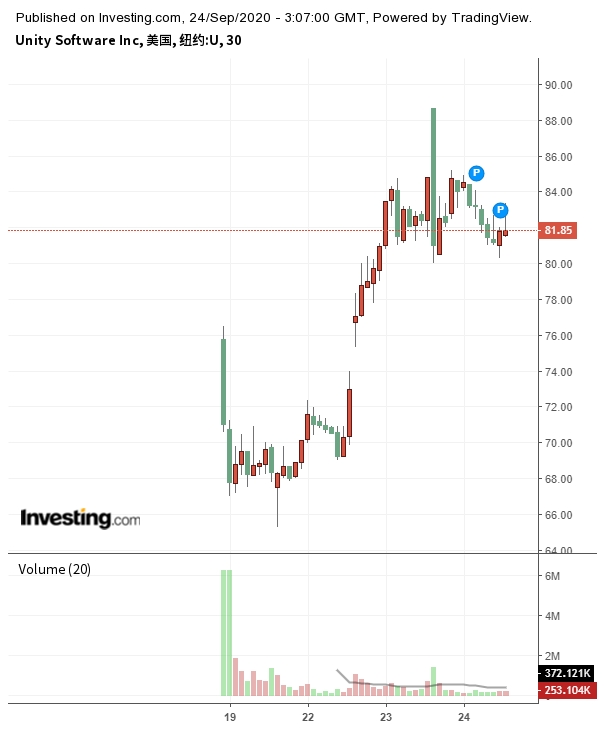 Unity Software股价30分钟K线图,来源:英为财情Investing.com