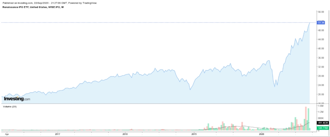 Renaissance IPO ETF周线图,来源:英为财情Investing.com