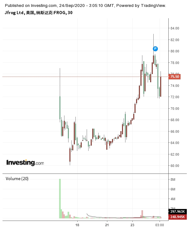 同样在9月16日上市的Jfrog Ltd (NASDAQ:FROG)也为IPO市场添了一把火。这家基于云的软件工具开发商的IPO定价为每股44美元,高于其最初的指引区间每股33美元至37美元。