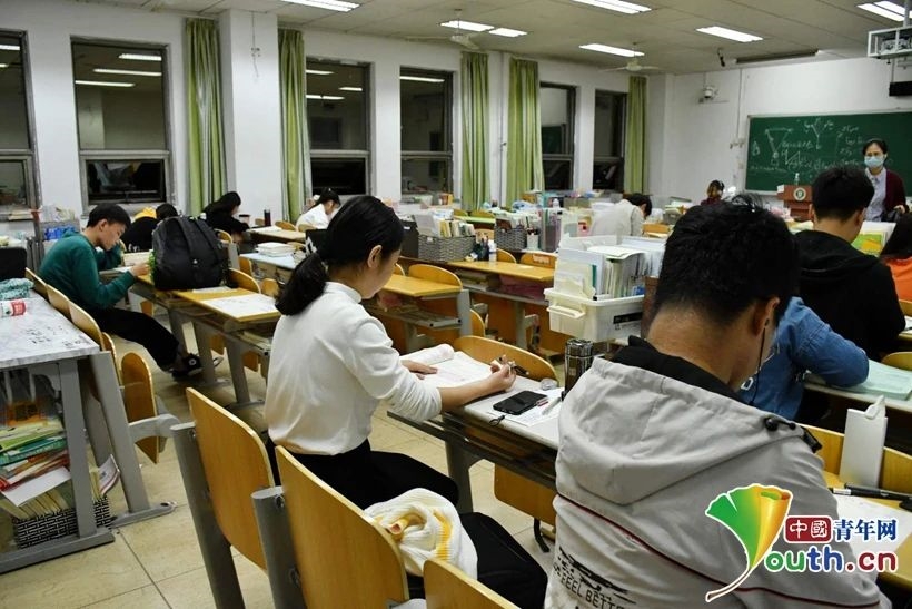 一位新闻传播学院的大四学生告诉记者,教学楼每天10点多就关门,但为了能够保证充足的背书时间,她会在教学楼关门后,在图书馆前的路灯处背半小时的传播学内容。虽然每天很辛苦,但她非常有信心。“自己从3月份开始复习,又有那么多一起奋战的小伙伴,并不感到孤独,相信我们都会上岸的。”