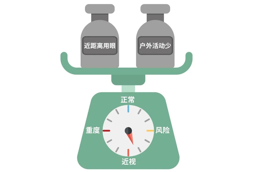 可以这样理解:近视就像往一个秤上加砝码,积累到一定程度就会近视。砝码可以来自遗传,也可以来自环境,加得越多,近视也就相对越严重。