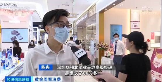 深圳华强北茂业天地高级经理 陈舟:整个国庆的前三天,就是一号到三号,我们整个全店的(黄金)销售是增长了80%多,我们的客流量第一天有67%的增长。