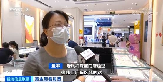 深圳潮宏基珠宝门店店长 黄玉凤:销售额跟五一比的话是有上升的,上升了50%左右。