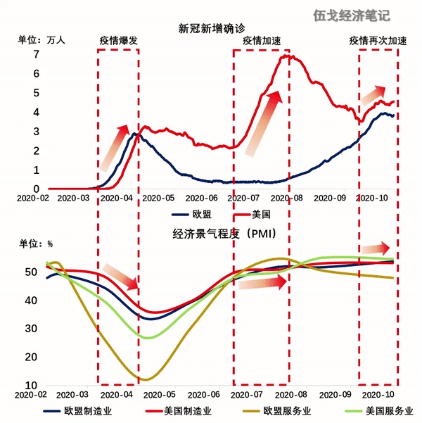 1.国内长假旅游消费似起高潮,海外疫情选举时有波澜。与第一波疫情有所不同,当前欧美新增确诊人数虽有反弹,但病毒检测力度显著增强,病死率明显下降,抗疫封锁措施也相应减弱。美国劳动力市场持续好转,欧洲制造业PMI指数也在回升。韩国、越南等出口导向型国家出口高频数据大幅回暖,折射出全球经济整体的修复趋势。