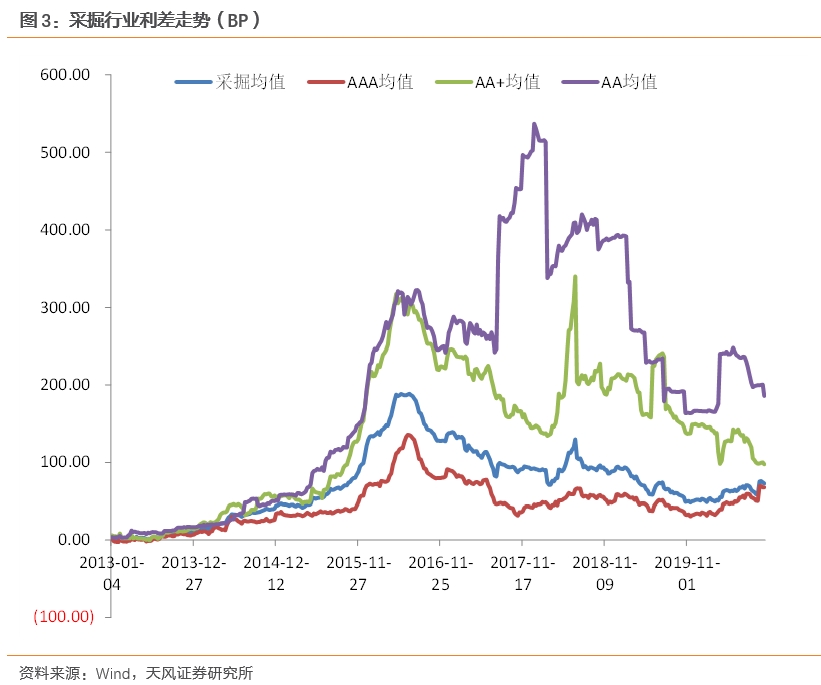 采掘类产业债行业利差中低等级下行。9月30日,采掘类产业债行业利差为72.90bp,与9月25日相比,下行1.37bp。分评级来看,AAA、AA+、AA级采掘类产业债行业利差分别为67.92bp、97.80bp、185.65bp,与9月25日相比,AAA级、AA+、AA级分别上行0.19bp、下行2.41bp和14.74bp。
