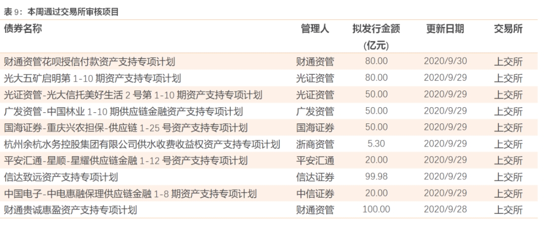 根据上交所、深交所公告,9月28日-30日共有16期资产支持专项计划通过交易所审核,13期在上交所,3期在深交所,合计通过审核的ABS拟发行金额为782.79亿元。