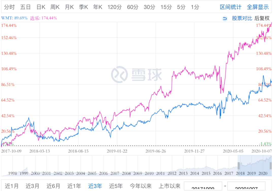 过去两年间,沃尔玛的市值上涨不到三成,而达乐的市值已经翻番——融合了好市多与拼多多混合基因的零售新物种、中国版“达乐”名创优品,能否打动华尔街,勾画一路上行的市值曲线?