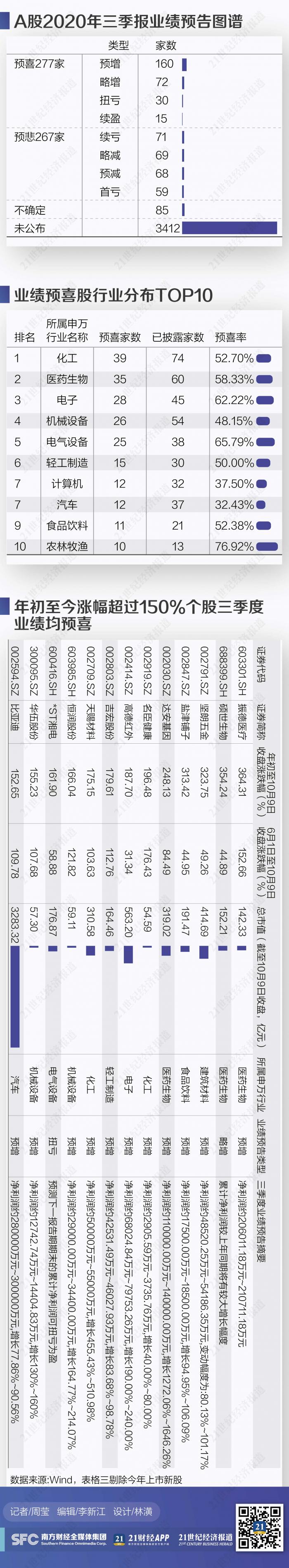 10月9日盘后,沪深两市2020年首份三季报出炉。