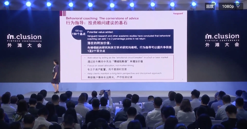 举例:今年3月份在美国市场多次熔断的情况下,先锋领航 99.6%的投资者遵循了行为指导,87%的投资者没有进行股票抛售,12.6%的客户在市场大跌的情况下追加了股票投资。由此发现,投资顾问如果能为投资者进行合理的情绪管理和行为指导,这能为投资者带来1%-2%的投资增长。