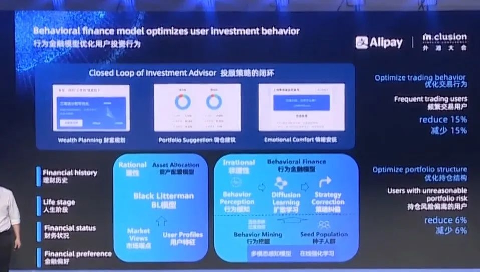 2)懂我:通过风测问卷来了解用户风险属性承受能力的方式不一定深刻,也不一定完整;智能化的理财服务也不一定完整,因为它需要具备从海量微观和高伟这个数据之中建立起来对用户更加完整的需求的理解。