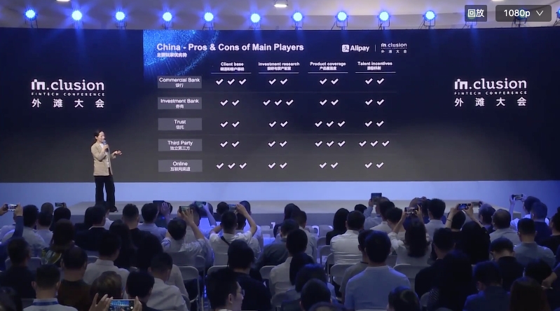 1)支付宝目前已经服务超过十亿的用户,成为了全国最大的线上服务平台,与170家资管机构合作,促成了4.1万亿的资产管理规模。在平台上,投资者可以选择超过6000只的理财产品,对于普通老百姓来说,可能理财是在基金、保险及证券公司所提供的理财产品里选择,在现在阶段还认为理财就是买理财产品,但会产生购买不同的理财产品的意识,并进行大类资产配置。目前在支付宝的理财平台上已经有近四成人,有了三种不一样的资产配置。