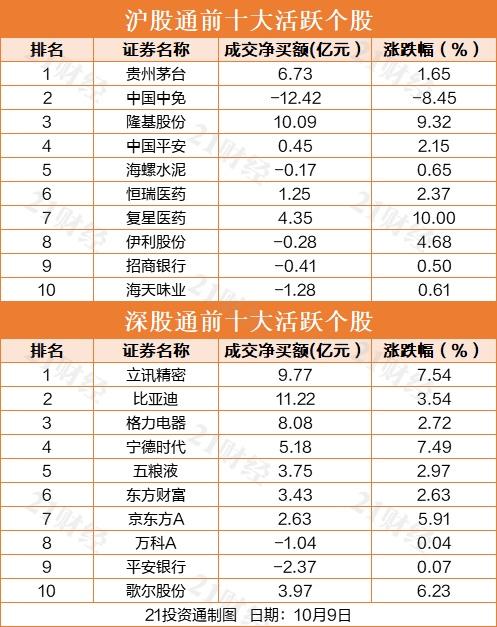个股方面,比亚迪净买入11.22亿,隆基股份净买入10.09亿,立讯精密净买入9.77亿,中国中免净卖出12.42亿元,盘中触及跌停。