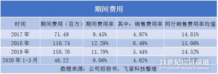 最后来关注公司的费用管控能力。公司的期间费用由销售费用、管理费用、研发费用和财务费用构成。报告期内,公司的期间费用率分别为9.45%、12.29%、11.79%和 9.06%。2018年期间费用率的上升主要是当期加大了市场宣传推广力度。2018 年度和2019 年度期间费用率相当;2020 年度 1-3 月期间费用率较 2019 年度下降,主要由于疫情的影响,市场拓展费用相关支出减少。