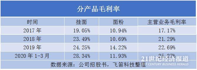 公司面粉的毛利率要低于挂面的毛利率,报告期内,公司面粉的毛利率分别为 10.94%、10.69%、14.22%和 11.93%,呈现波动的趋势。公司解释,面粉主要原材料为小麦,因此小麦的生产采购成本直接影响面粉的毛利率水平。
