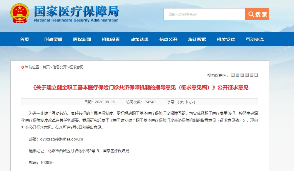 8月26日,国家医保局正式向社会公布《关于建立健全职工基本医疗保险门诊共济保障机制的指导意见(征求意见稿)》: